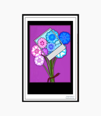 Polaroid Memory Bouquet – Floral Snapshot on Royal Purple