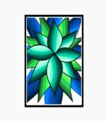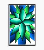 Cool-Toned Succulent Symmetry – Emerald and Sapphire Foliage” is a vibrant yet soothing piece that draws inspiration from the geometric beauty of nature. The central flower-like form uses striking gradients within each petal, moving from deep sapphire blues to bright lime greens and emerald teals. The layered design creates an illusion of depth and a stained-glass effect. This artwork is perfect for bringing a refreshing and modern touch to any room. Its cool color palette makes it an ideal choice for bathrooms, kitchens, or minimalist living spaces seeking a natural but stylized focal point.