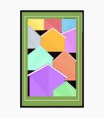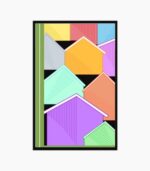 Colorblock Rooftops – Abstract Cityscape” is a dynamic piece of digital art that uses bold colors and geometric shapes to depict a vibrant, stacked neighborhood. The overlapping houses, rendered in striking shades of purple, orange, mint green, and coral, evoke a sense of urban energy and playful disorder. The clean black background and the contrasting vertical green bar add a modern, graphic element to the composition. This artwork is perfect for adding a burst of personality and a contemporary, mid-century modern feel to a living area, study, or teenager’s room. It’s an excellent conversation starter that celebrates architectural form and color.