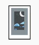 Crescent Moon in a Window – Minimalist Night Sky Serenity” captures the quiet magic of nighttime with a simple yet elegant design. The cool tones of the gray background and the deep black sky are perfectly contrasted by the bright, stylized crescent moon and the gentle blue clouds. The artwork offers a peaceful, contained view of the cosmos, evoking feelings of calm, introspection, and sweet dreams. It is an ideal piece for bedrooms, nurseries, or any area dedicated to relaxation. Its minimalist aesthetic allows it to seamlessly integrate into modern and Scandinavian-inspired interiors, bringing the serenity of the night sky indoors.