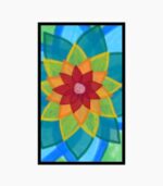 Kaleidoscope Bloom – Layered Floral Mandala in Vivid Hues” is a celebration of color and symmetry. This artwork features layered petals in a mandala arrangement, radiating outwards in intense shades of red, warm orange, and bright green, contrasted by a cool, energetic blue background. The painterly style and vibrant composition evoke a feeling of dynamic energy, growth, and joy. It is an excellent choice for a space that needs a focal point of color, such as a creative studio, a sunlit living room, or a meditation area. Let this bold bloom infuse your room with positivity and artistic expression.